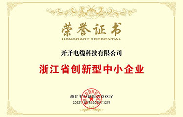 開開電纜通過浙江省創新型中小企業和專精特新中小企業認定